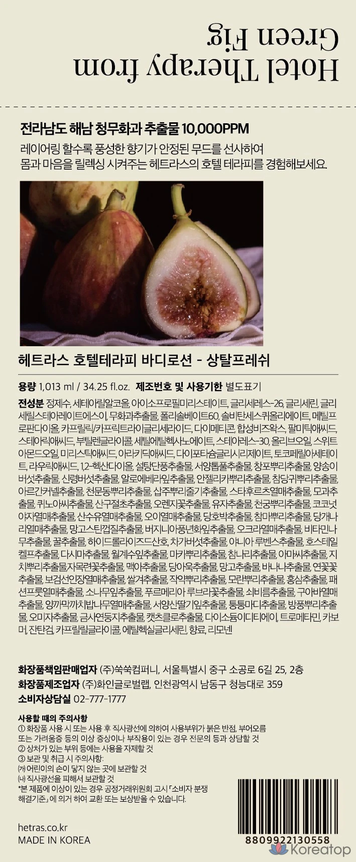 Лосьон для тела HETRAS Hotel Therapy с ароматом Santal Fresh, 1,013 л, 1 шт.