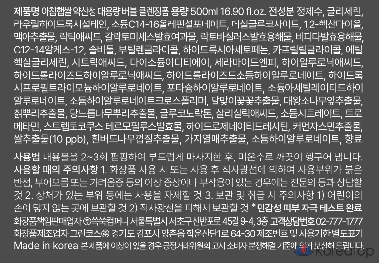 Очищающая пенка для лица HETRAS Morning Rice с мягким кислым эффектом, 1 шт., 500 мл
