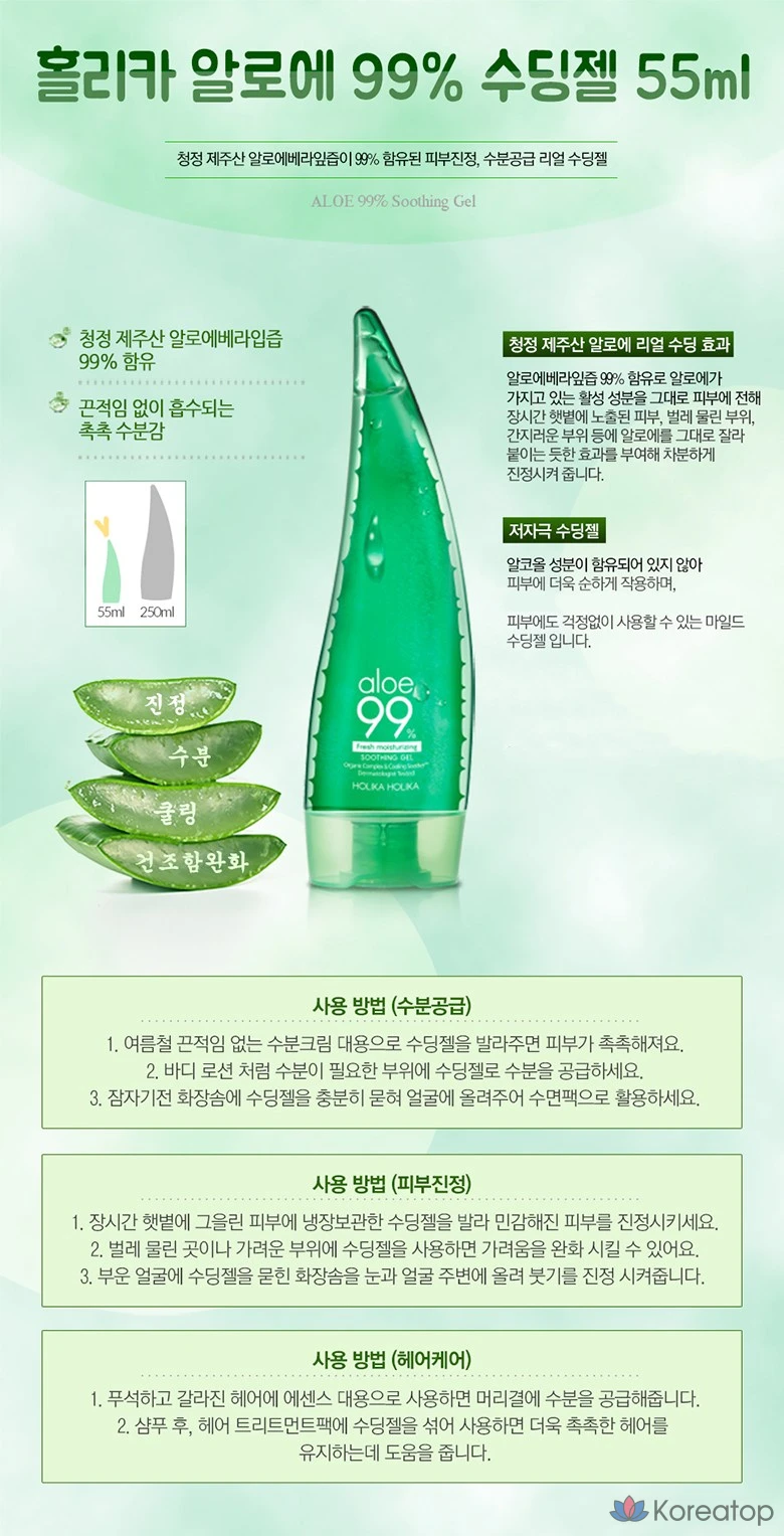 Универсальный несмываемый гель алоэ вера для лица и для тела Holica Holica Алоэ, 99% , 55 мл