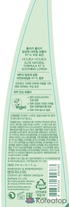 Holika Holika Aloe Natural Formula успокаивающий лосьон, 240 мл, 1 шт.