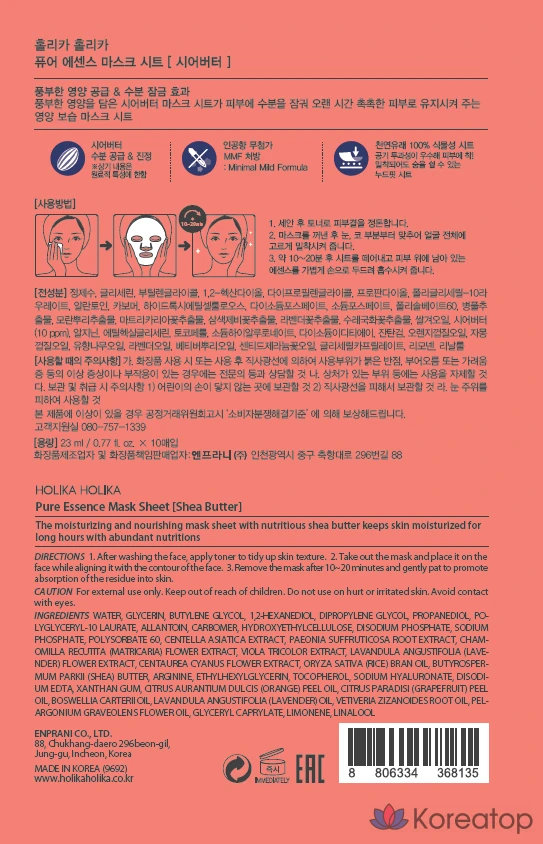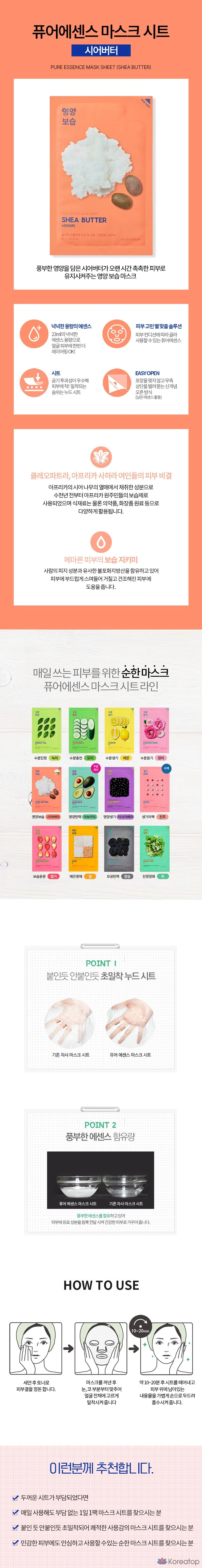 Holika Holika Pure Essence Тканевая маска с маслом ши, 10 штук, 1 шт.