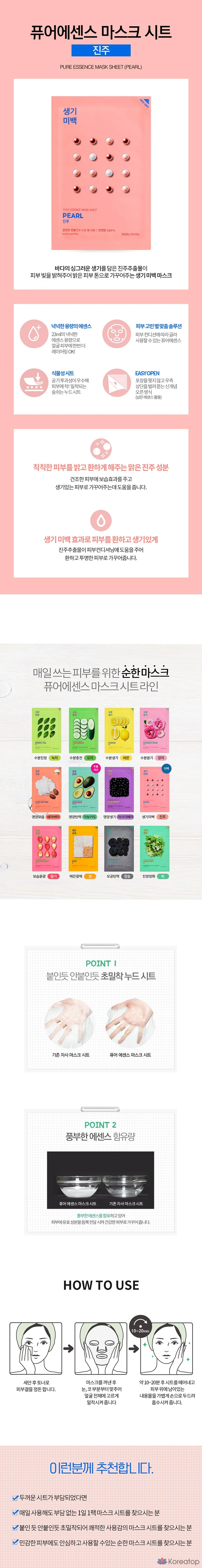 Маска-салфетка Holika Holika Pure Essence с жемчужным эффектом, 1 упаковка, 10 штук.