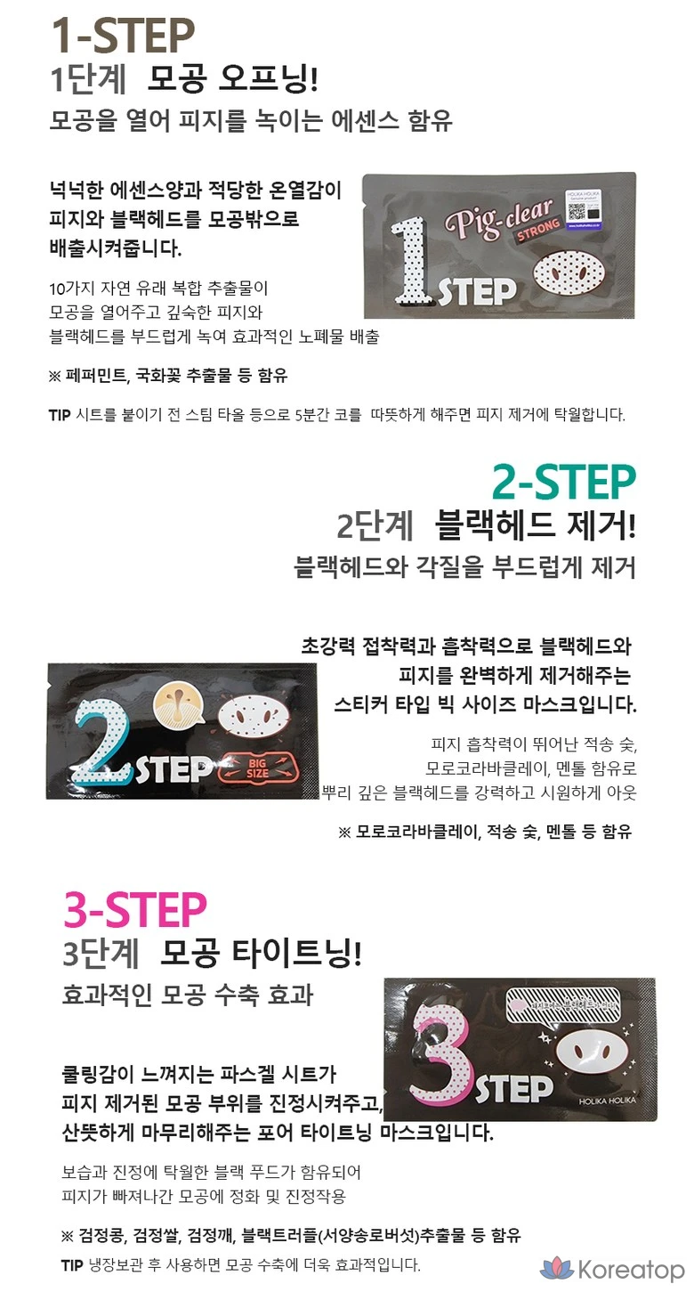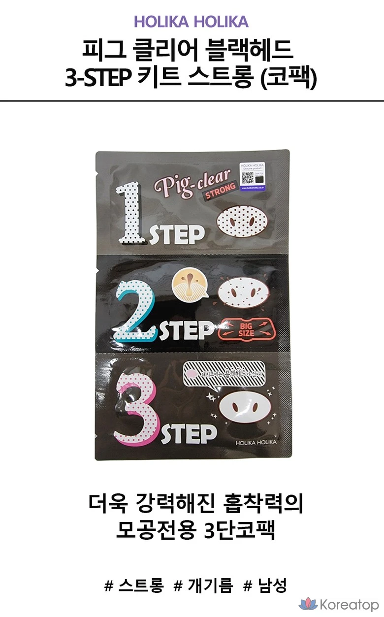 Набор для удаления черных точек Holika Holika Pig Clear Blackhead Kit 3-STEP Strong (для носа), 1 шт.