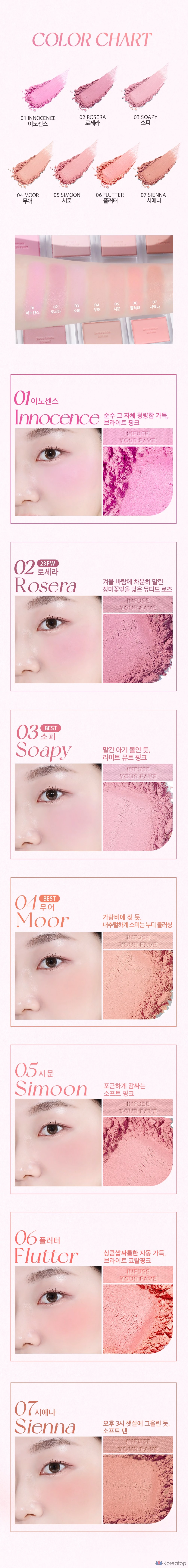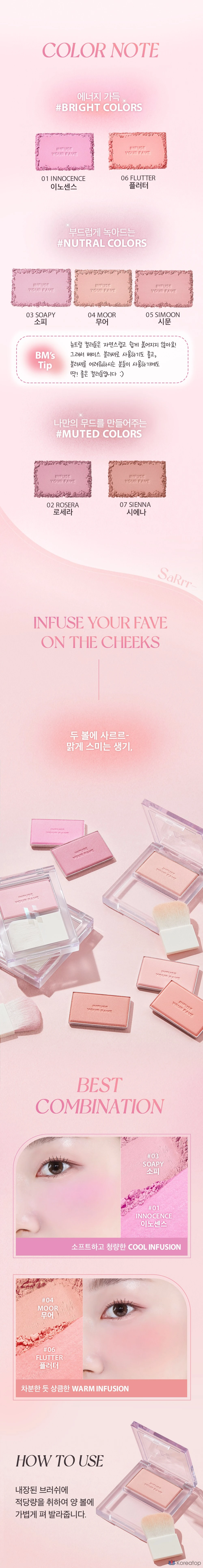 Румяна Holika Holika My Favorite Infusing Blush придают коже свежий и здоровый вид. Их нежная текстура легко наносится и равномерно распределяется, создавая естественный румянец. Благодаря натуральному составу, продукт подходит для всех типов кожи, включая чувствительную. Компактный формат позволяет всегда иметь румяна под рукой, а устойчивый цвет сохраняется на протяжении всего дня. Эти румяна станут отличным дополнением к вашему ежедневному макияжу, добавляя легкий эффект сияния и свежести. 🌸