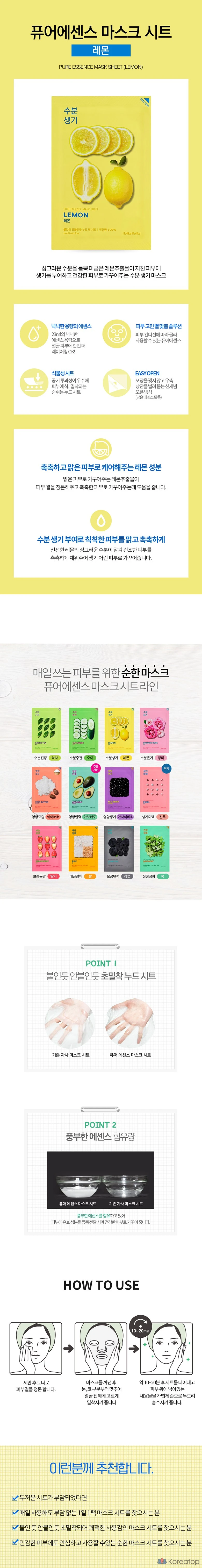 Тканевая маска для лица Holika Holika Pure Essence с ароматом лимона, 1 упаковка, 10 штук.