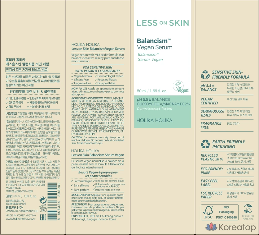 Holika Holika Less On Skin Balancing Vegan Mildly Acidic Cica Serum, 50 мл, 1 шт.