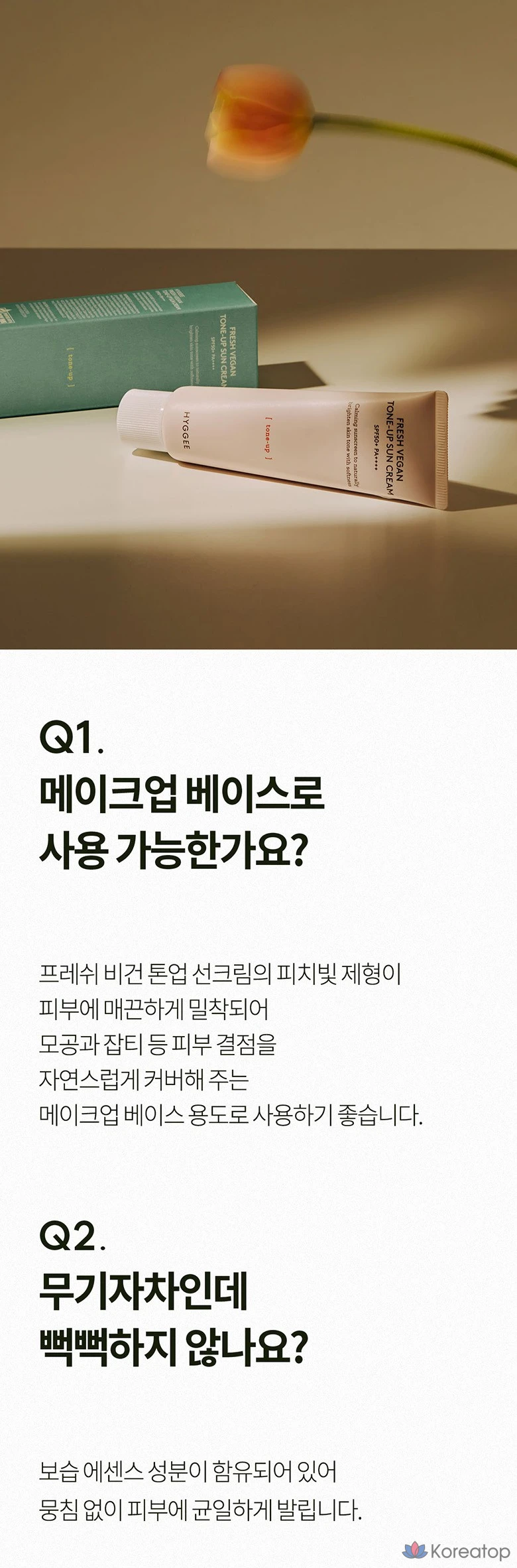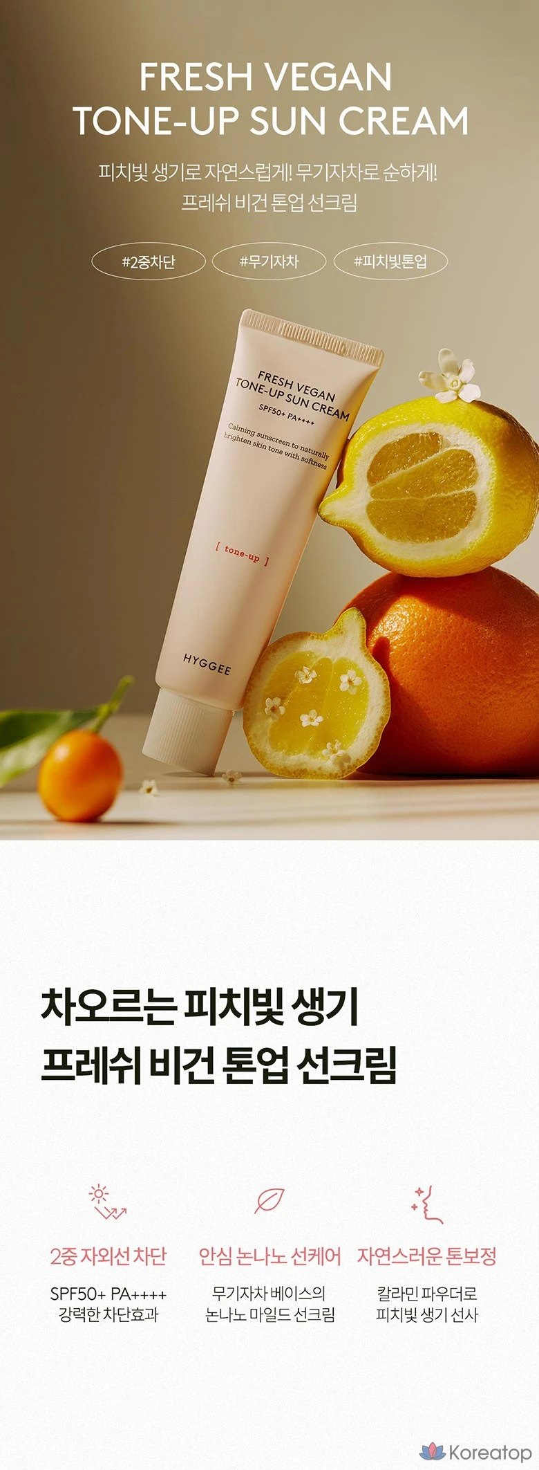 Солнцезащитный крем HYGGEE Fresh Vegan Tone-Up Sunscreen SPF50+ PA++++, 50 мл, 1 шт.