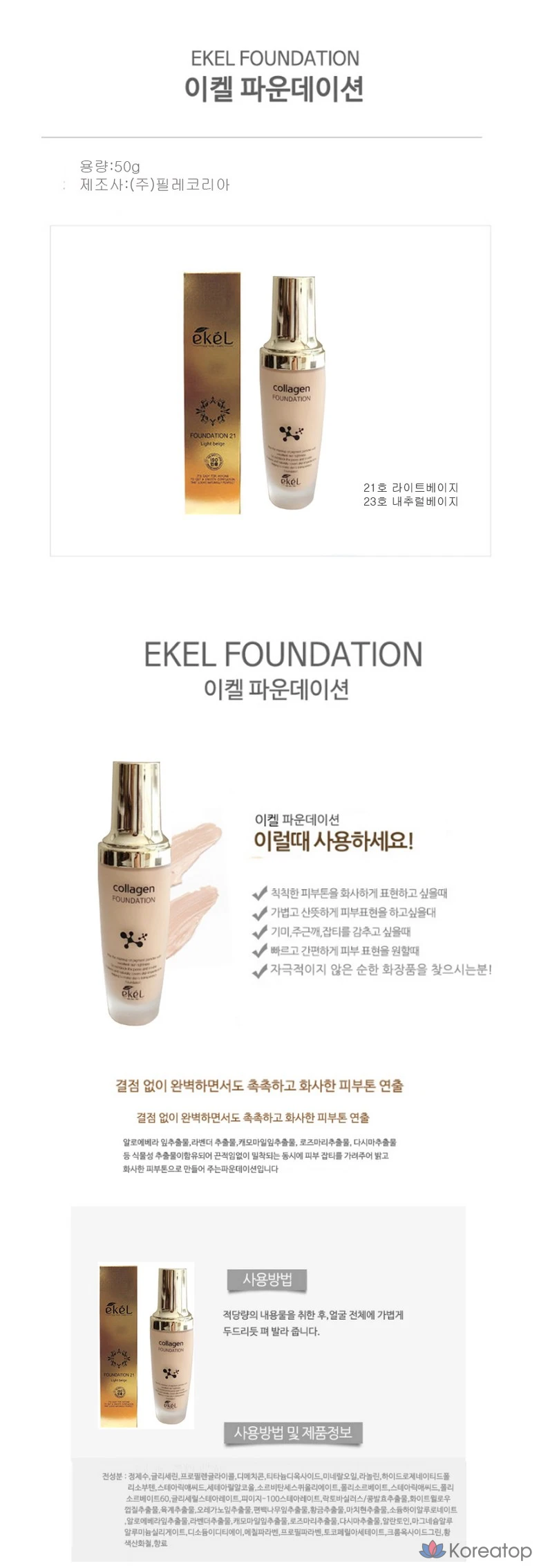База под макияж Ekel Collagen 50 мл, оттенок True Beige № 23, 1 шт.