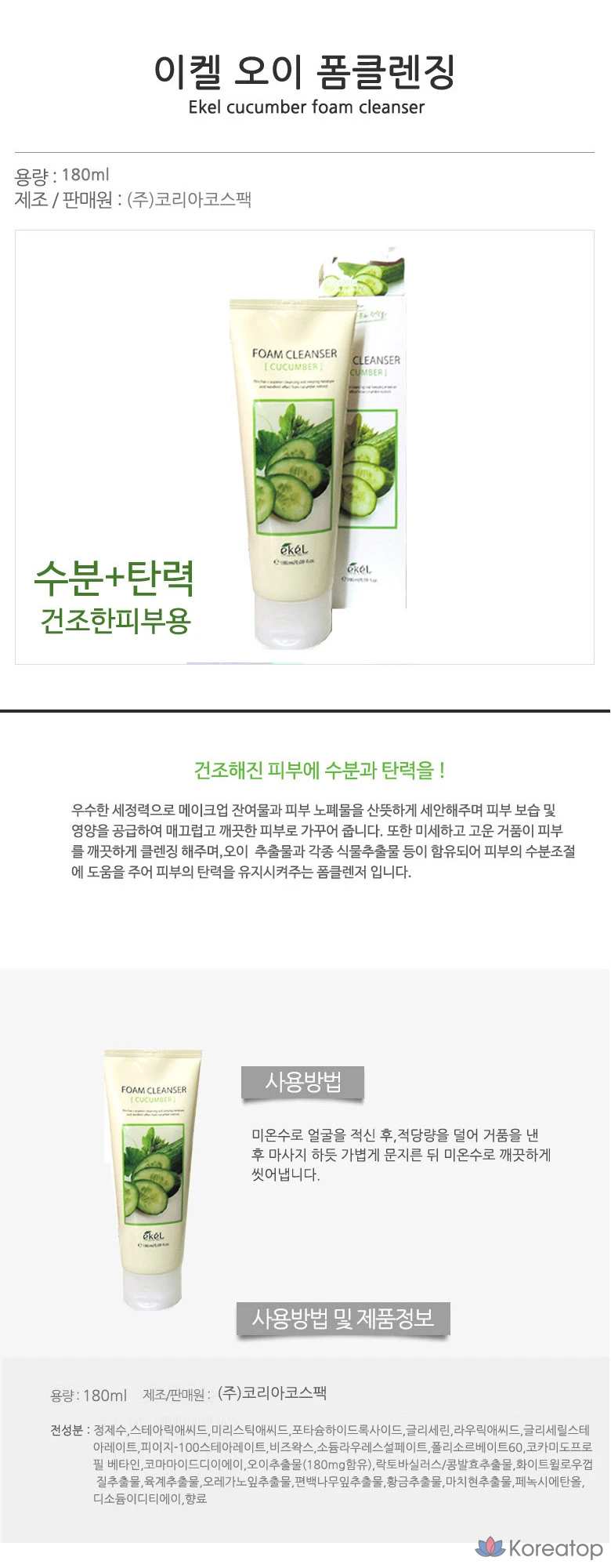 Пенка для умывания Ekel с огурцом, 180 г (180 мл), 1 шт.
