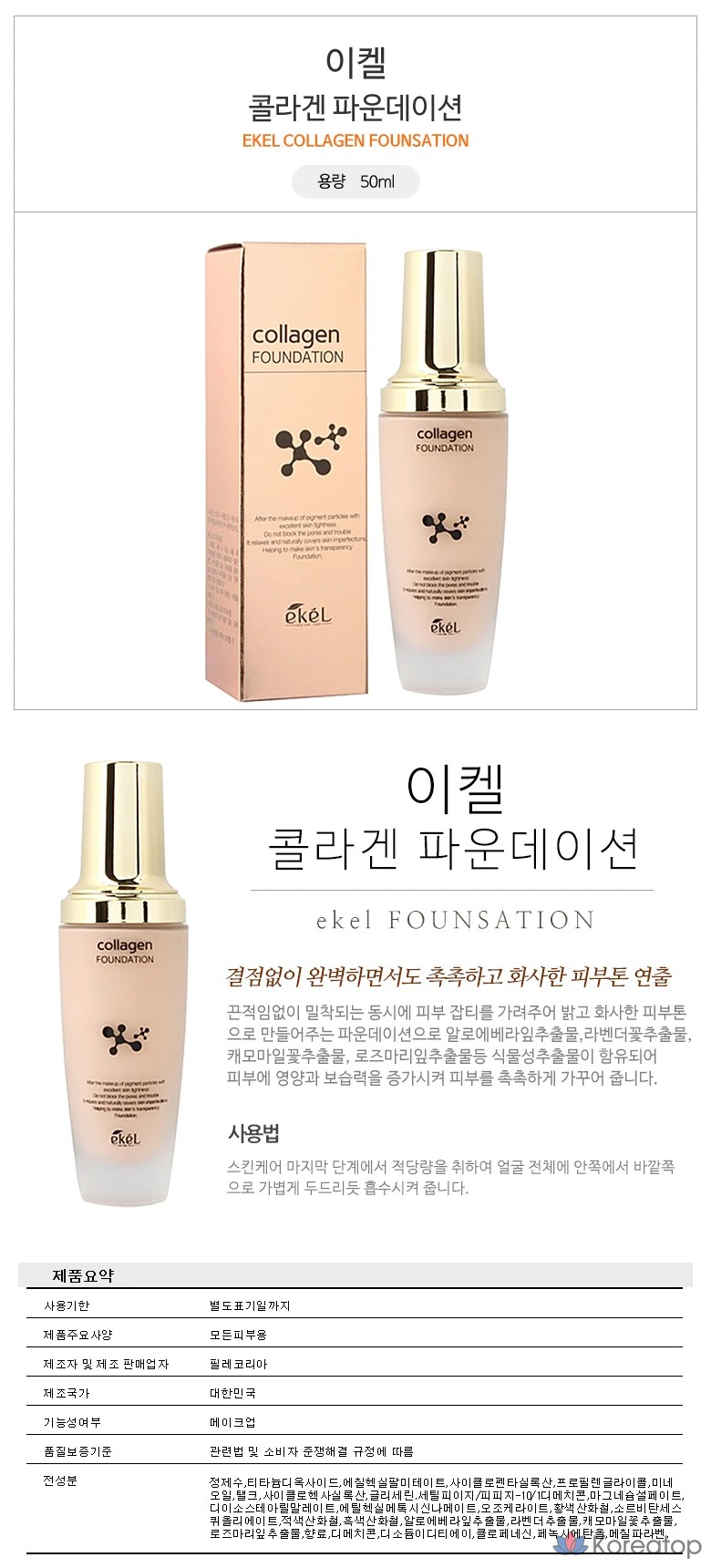 Тональный крем Ekel Collagen Foundation, 50 мл, № 23 Натуральный бежевый