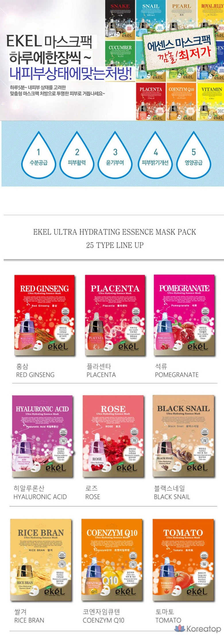 Ультраувлажняющая эссенция-маска Ekel с коллагеном, 1 шт., 1 упаковка
