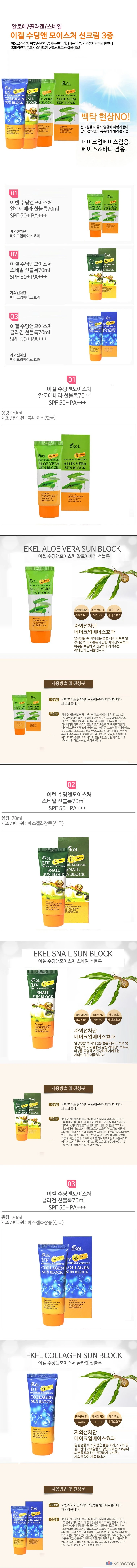 Успокаивающий и увлажняющий солнцезащитный крем Ekel с экстрактом слизи улитки, 70 мл, 1 шт.