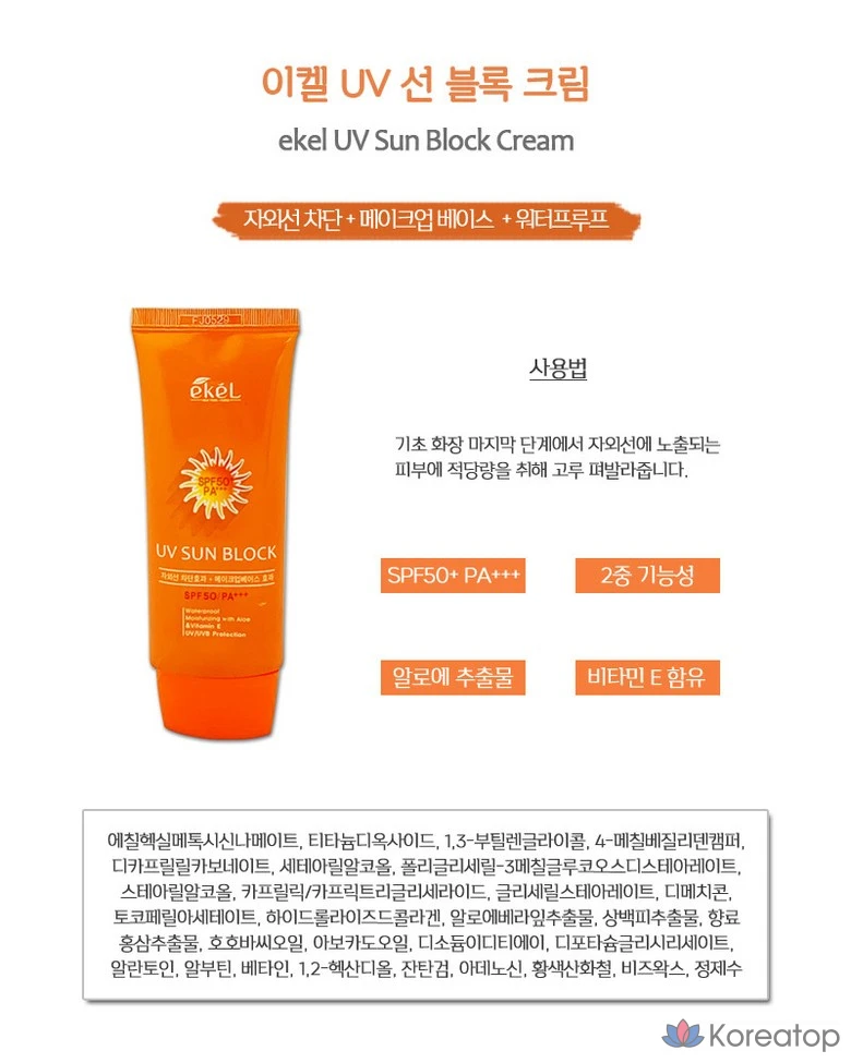 Водостойкая основа под макияж Ekel UV Sun Block Cream, 70 мл, 770515, 1 шт.