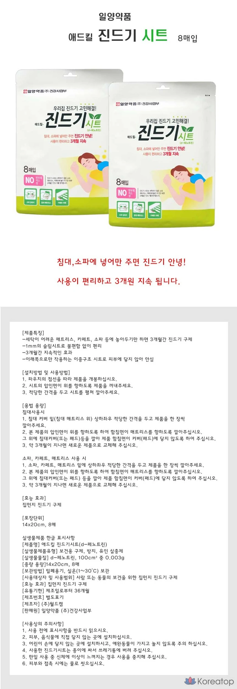 Ilyang Pharmaceutical Cocomong Adkill Tick Sheet, 8 листов, 1 шт.