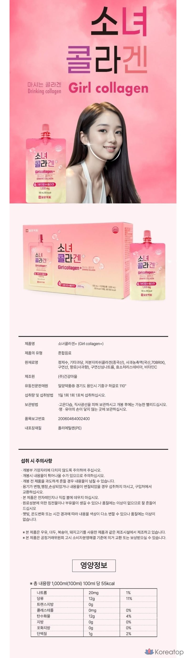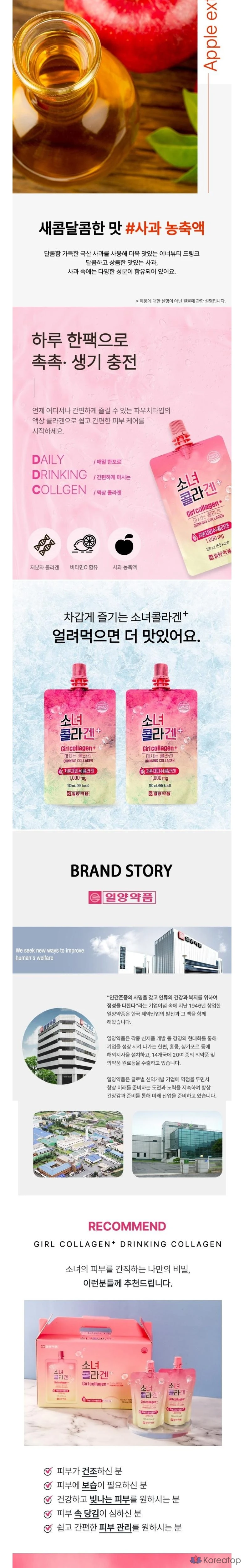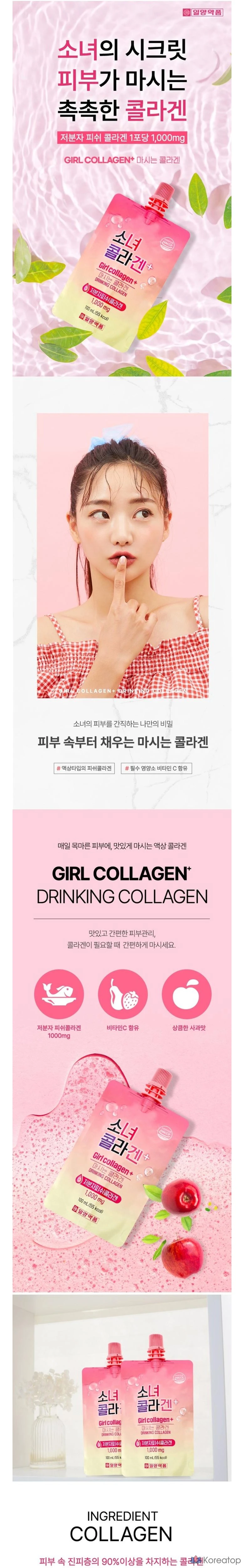 Ilyang Pharmaceutical Girl's Collagen Plus, 100 мл, 10 пакетиков, 1 коробка, питьевой низкомолекулярный рыбий коллаген, 10 порций