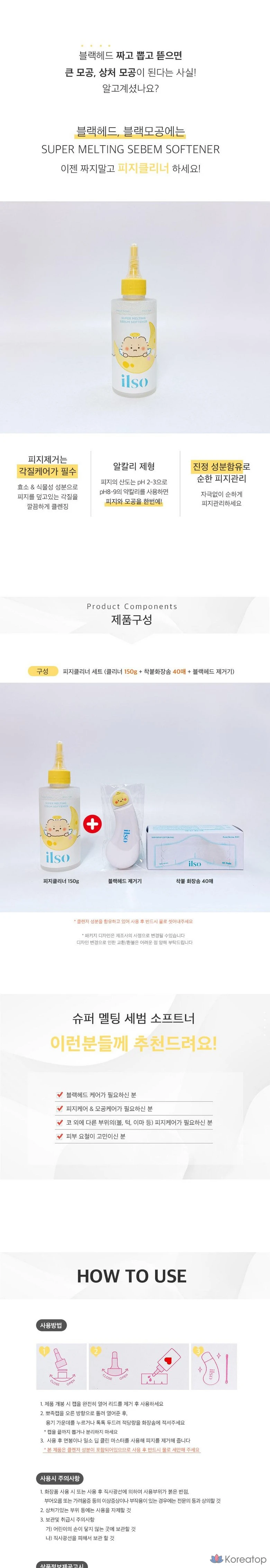 Набор для ухода за порами и смягчения кожного сала Ilso Blackhead Pore Care (150 мл + 40 ватных дисков + средство для глубокой очистки), 1 шт., 150 мл