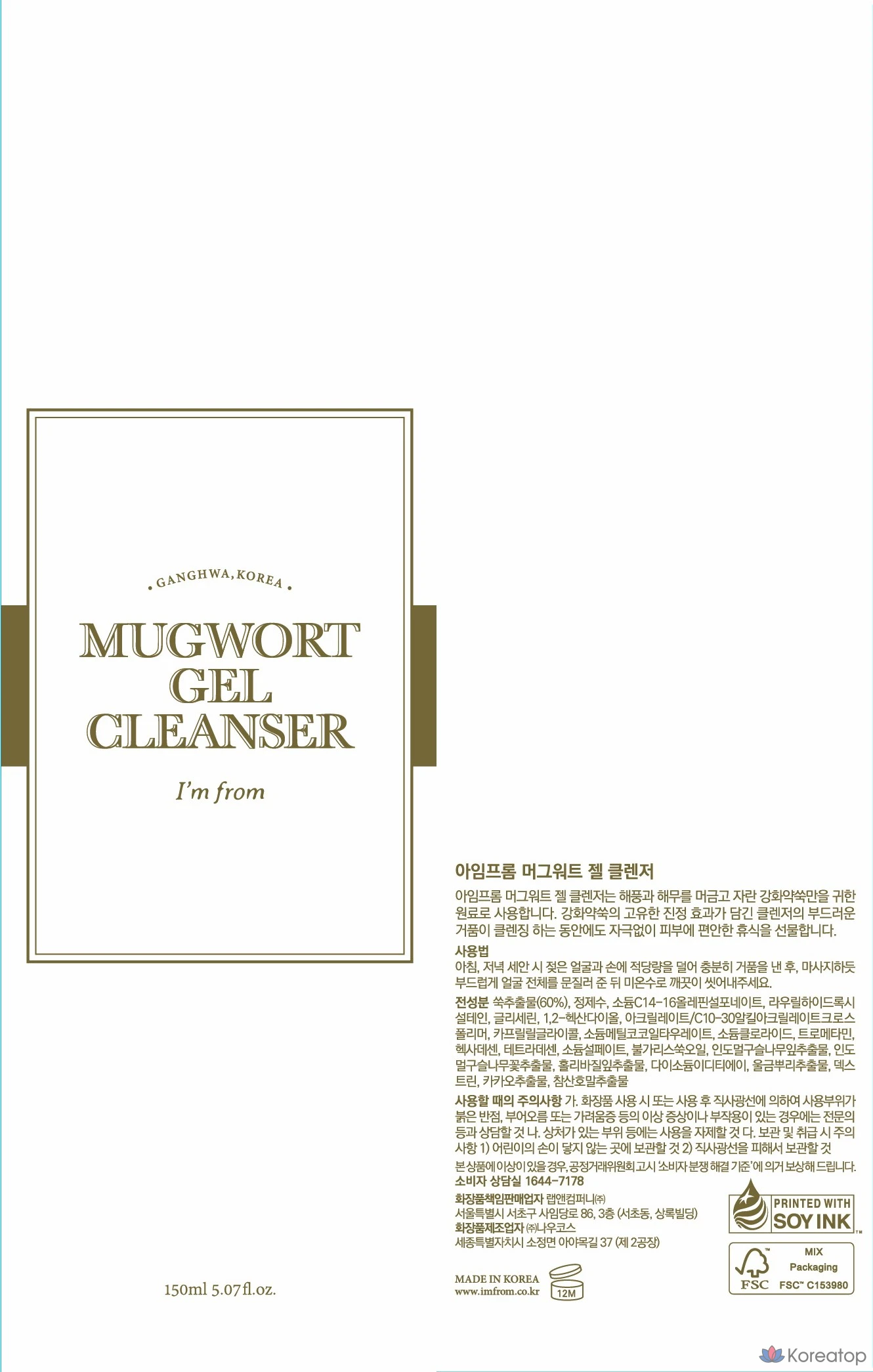 Гель для умывания «I'm From Mugwort», 1 шт., 150 мл
