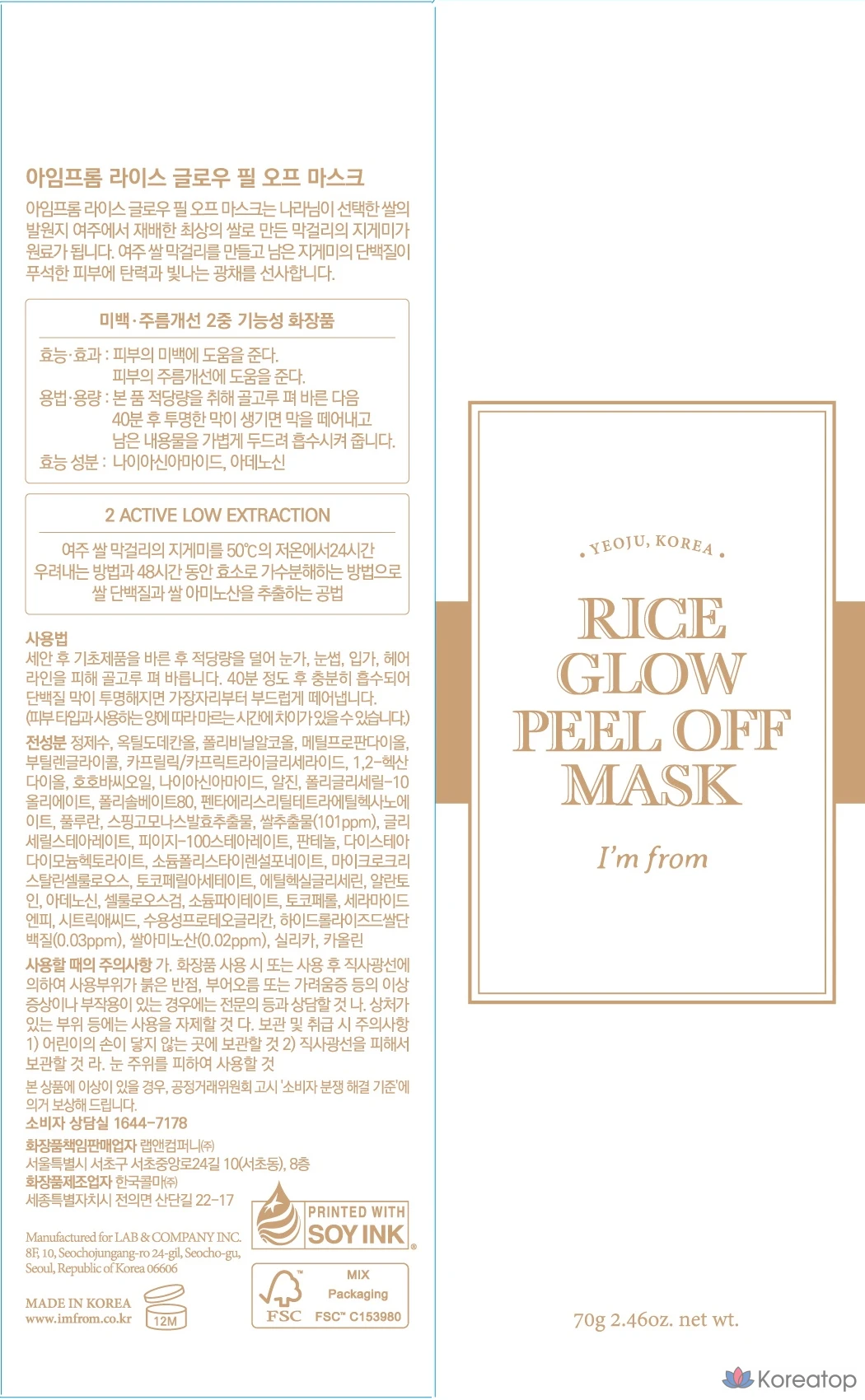 Маска-пленка I'm From Rice Glow, 1 упаковка, 1 шт.