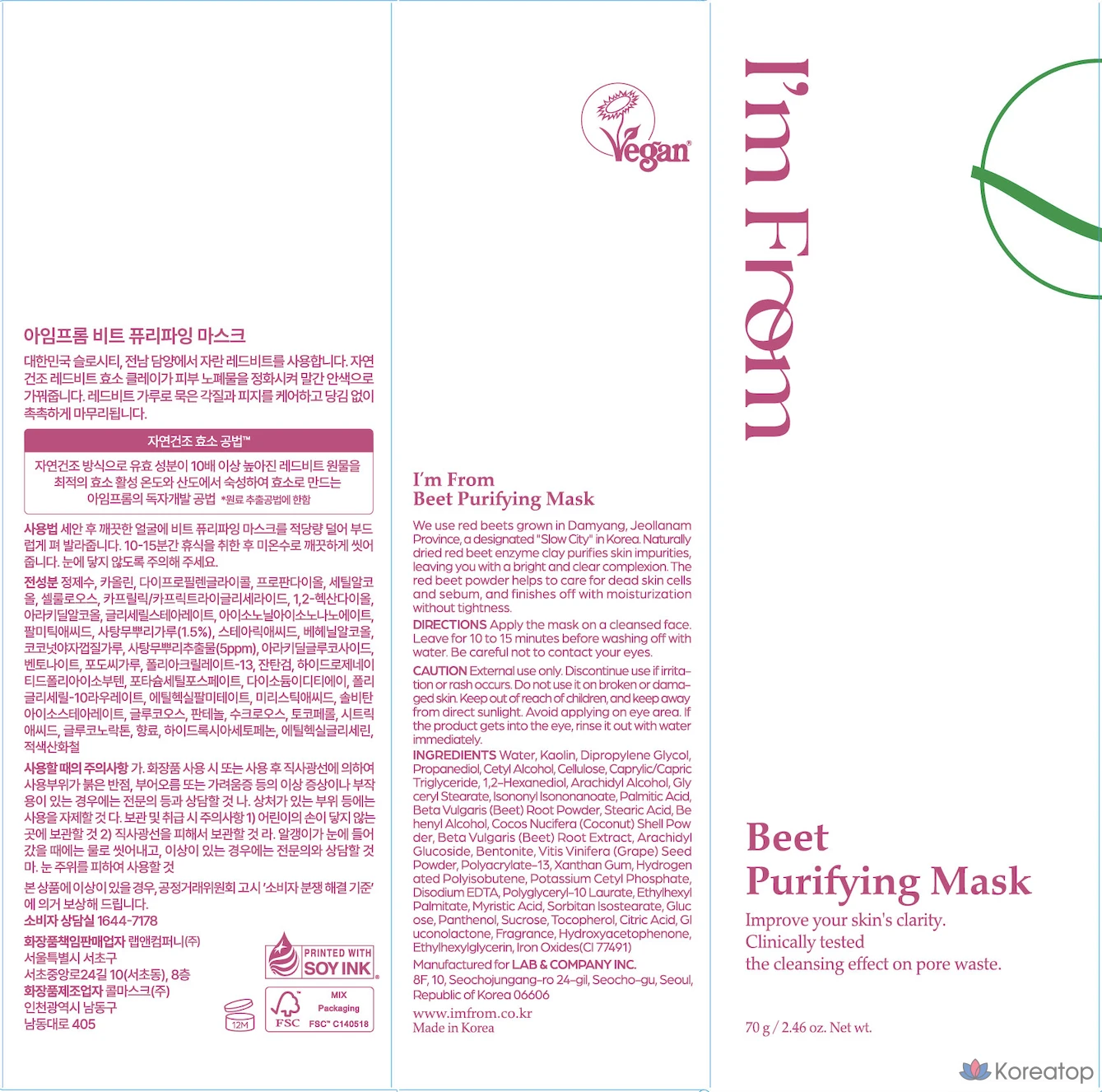 Очищающая маска для лица I'm From Beat, 70 г, 1 штука, 1 упаковка