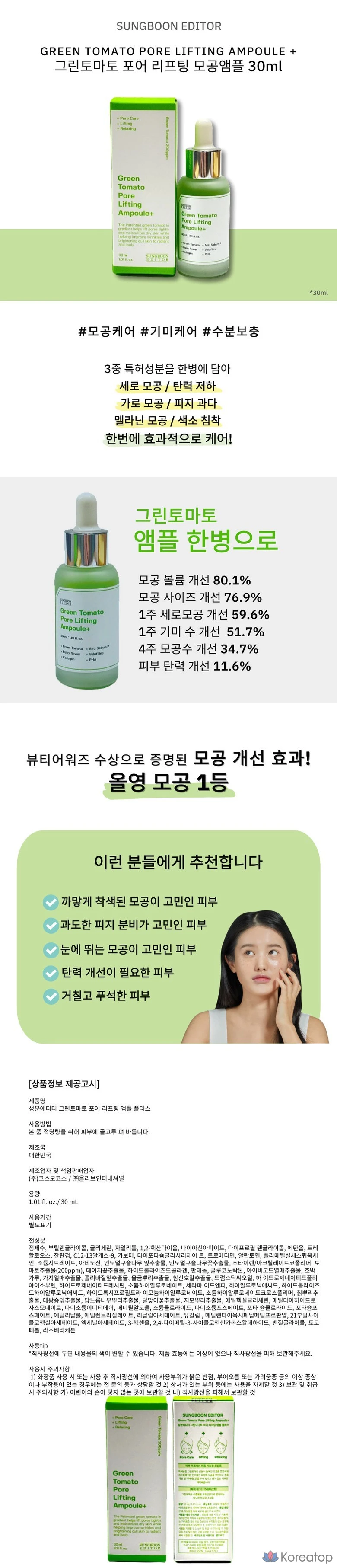 Лифтинг-сыворотка для сужения пор SUNGBOON EDITOR Green Tomato Pore Lifting Ampoule+, 30 мл