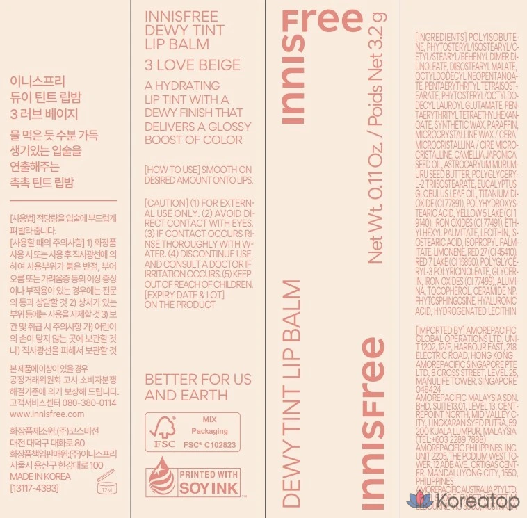 Бальзам для губ Innisfree Dewy Tint, 3,2 г, 1 шт.
