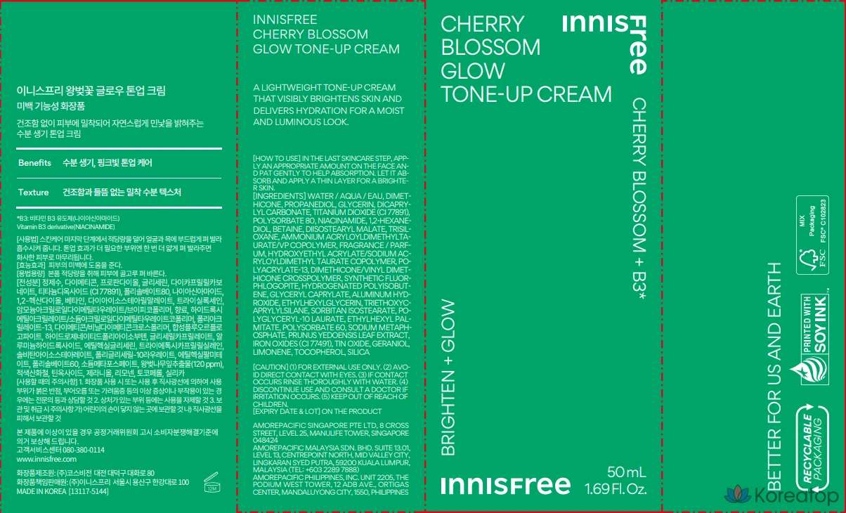 Innisfree Cherry Blossom Glow Tone-Up Cream, 50 мл, 1 шт.