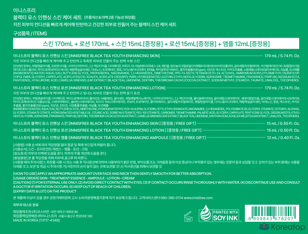 Набор для ухода за кожей Innisfree Black Tea Youth Enhancing Skincare Set, 170 мл, 2 комплекта