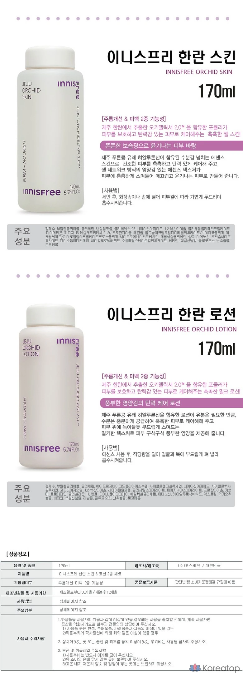 Набор из 2 лосьонов для лица Innisfree Hanran, 170 мл + 170 мл, 1 шт.
