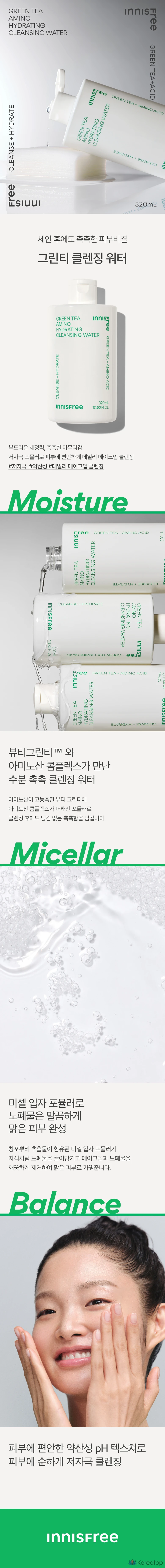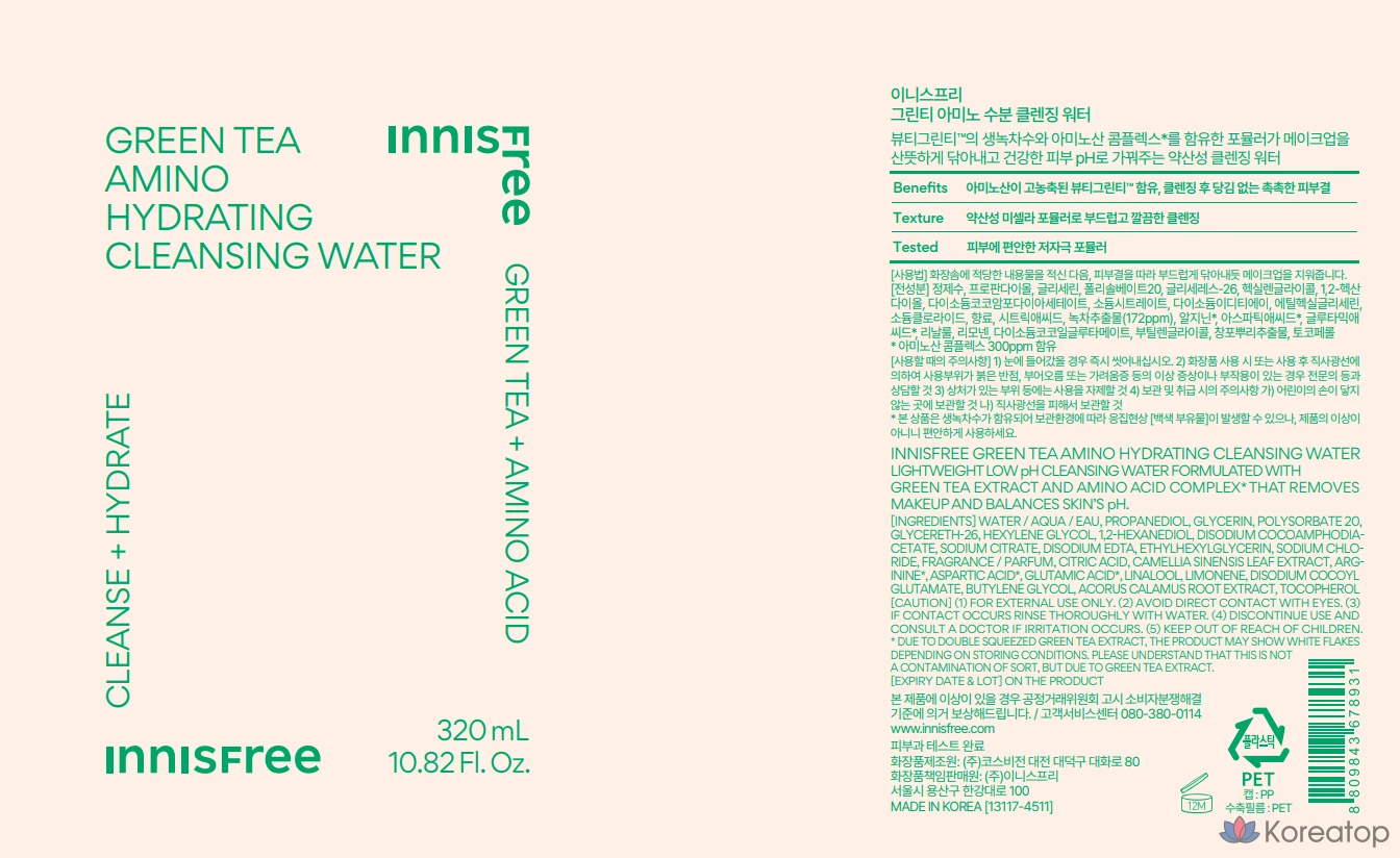 Очищающая вода Innisfree Green Tea Amino Moisture, 320 мл, 1 шт.