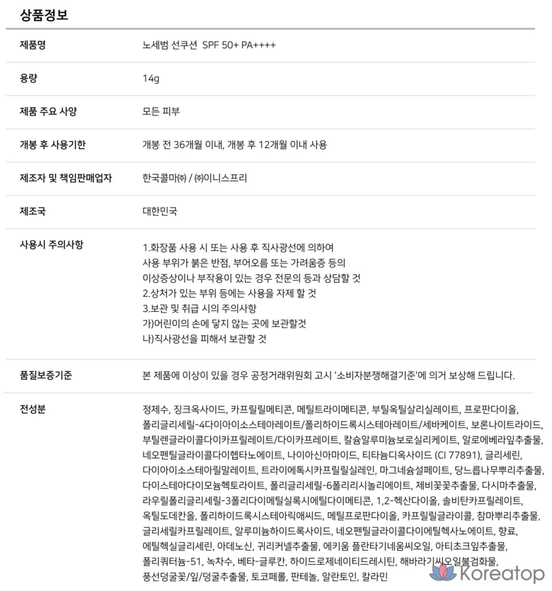 Солнцезащитный крем Innisfree No-Sebum Sun Cushion EX SPF50+ PA++++, 14 г, 1 шт.