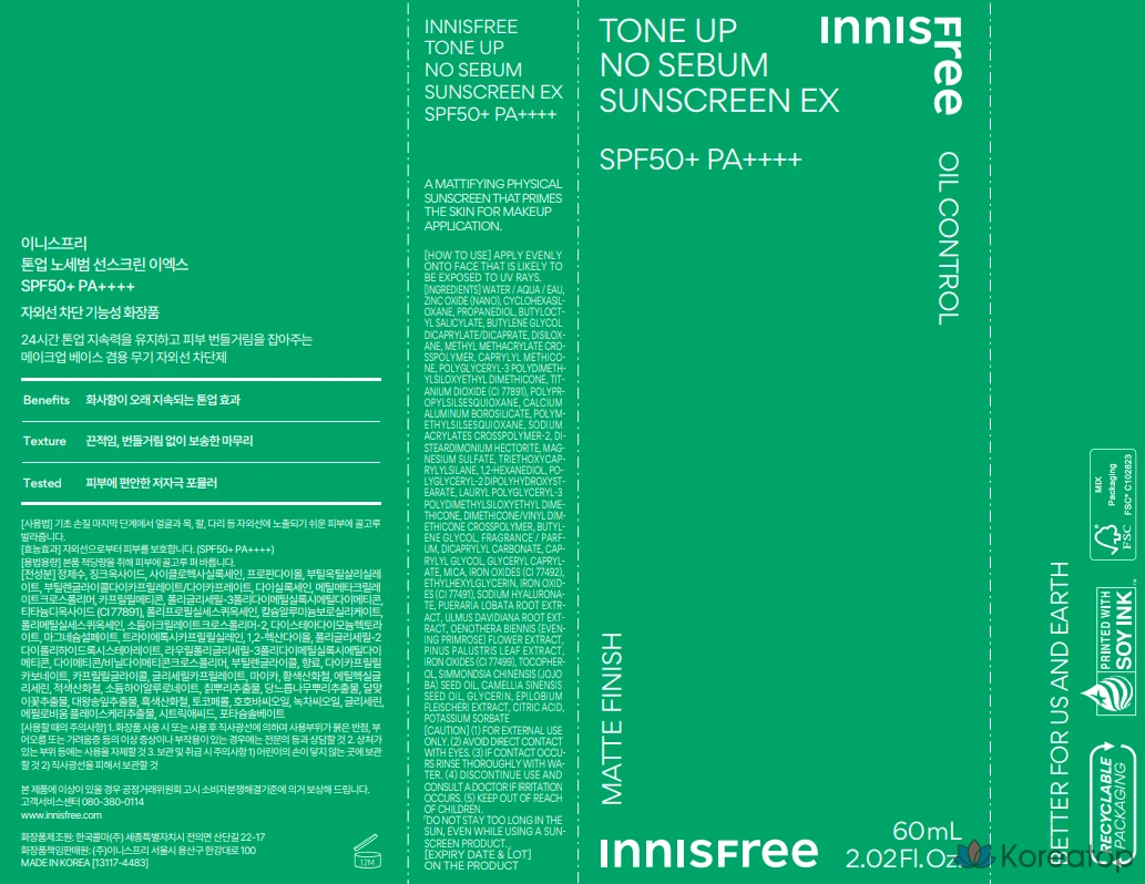 Солнцезащитный крем Innisfree Tone Up No-Sebum Sunscreen EX, 50 мл, 1 шт.