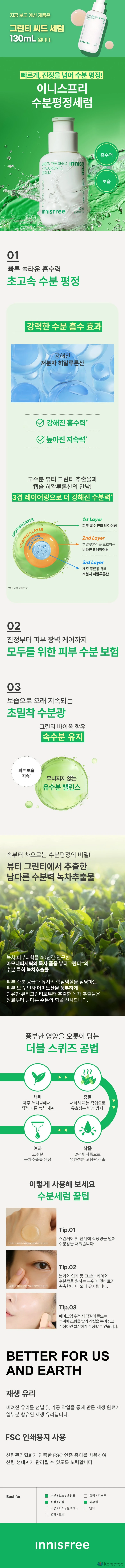Сыворотка для лица Innisfree с гиалуроновой кислотой и экстрактом зеленого чая, 50 мл, 1 шт.