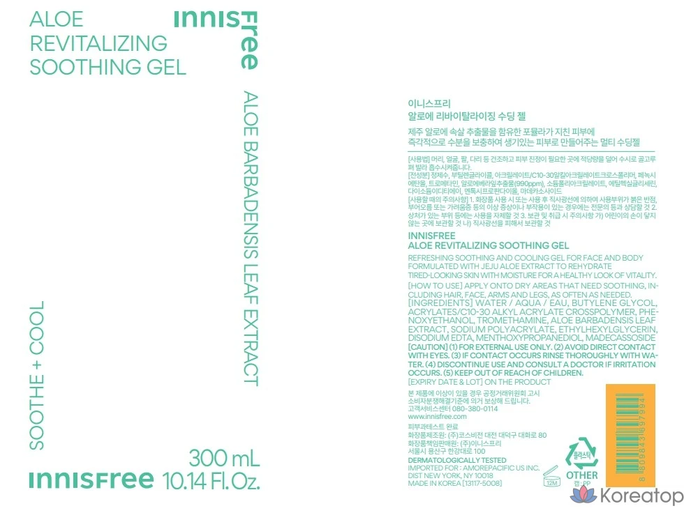 Универсальный увлажняющий гель с алоэ и мадекассосидом для лица и тела Innisfree, 300 мл