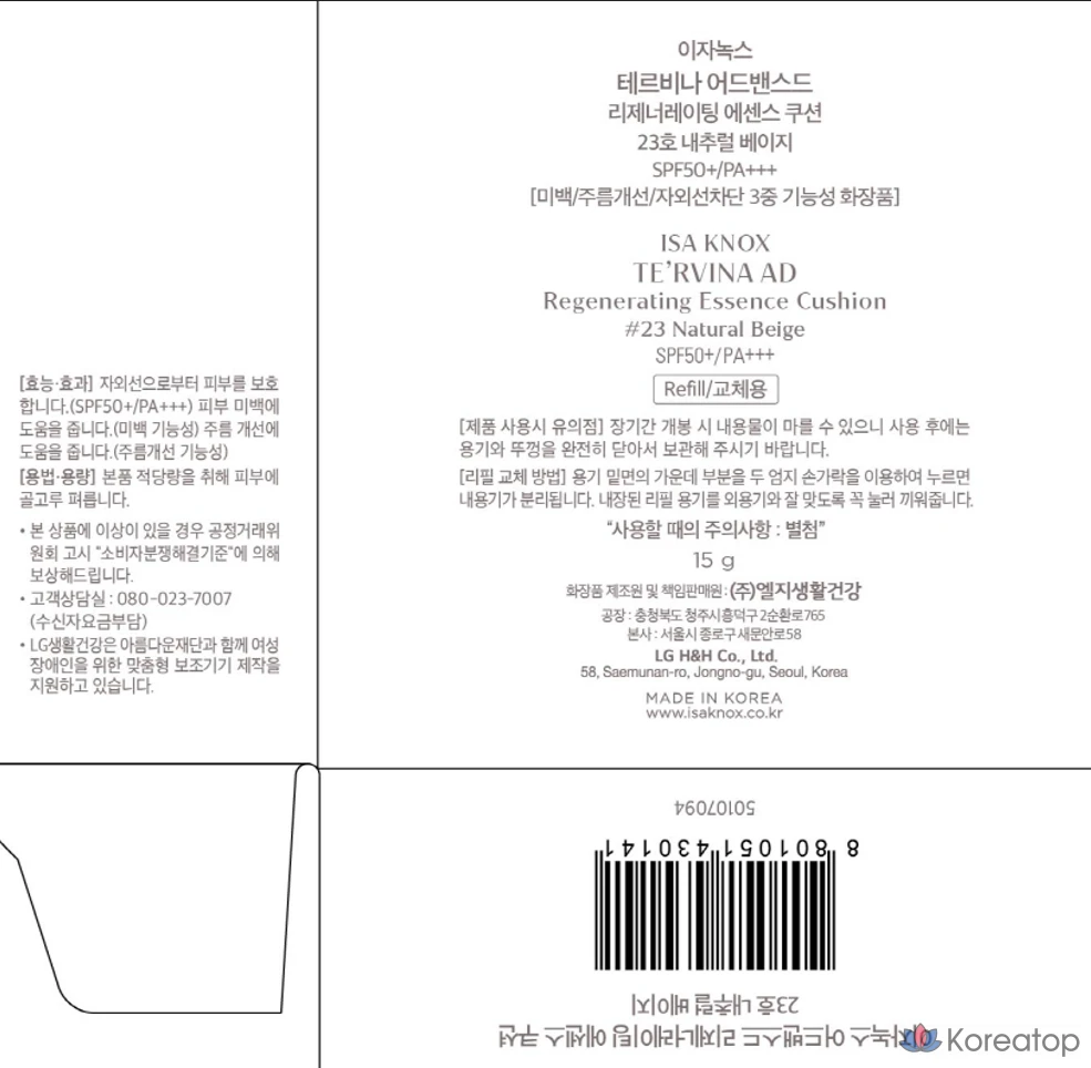 Сменный блок тонального крема Isa Knox Tervina Advanced Regenerating Essence Cushion Foundation, 15 г, № 21, светло-бежевый, 1 шт.