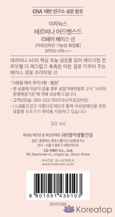 Солнцезащитная база Isa Knox Tervina Advanced Repair Base SPF50+ PA+++, 50 мл, 1 шт.