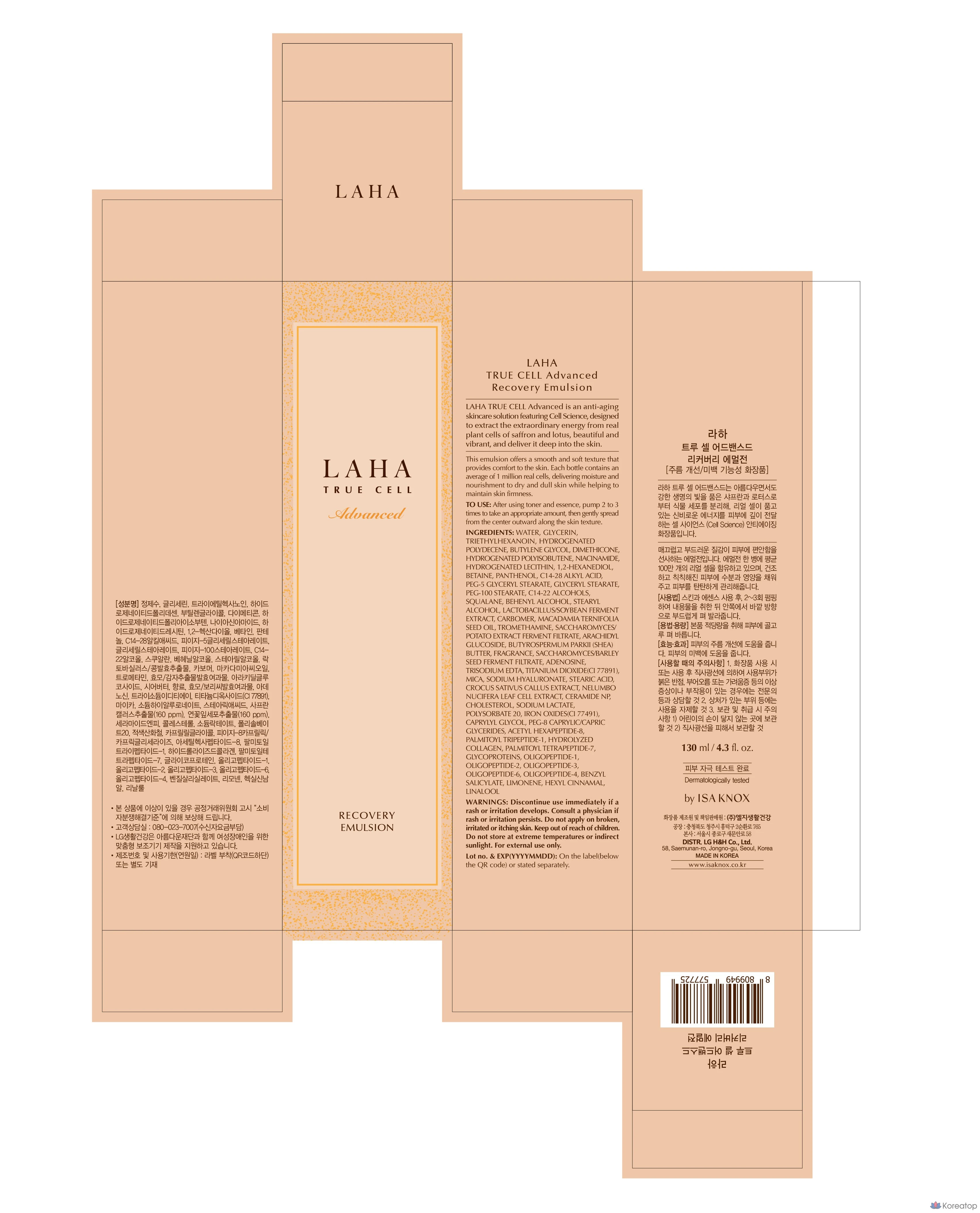 Восстанавливающая эмульсия Isa Knox Laha True Cell Advanced Recovery Emulsion, 130 мл, 1 шт.