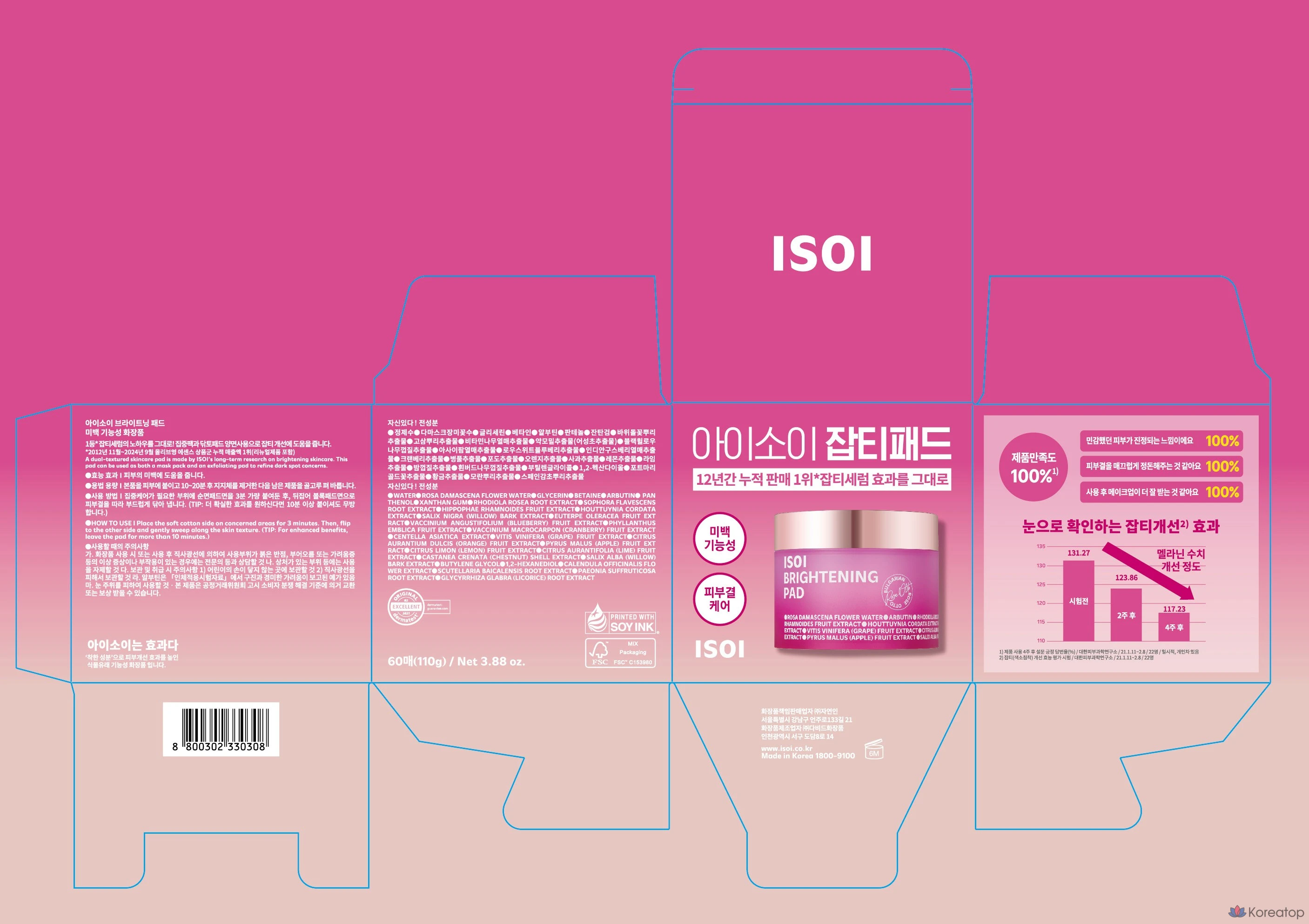 Осветляющие подушечки для лица Isoi, 110 г, 60 листов, 1 упаковка