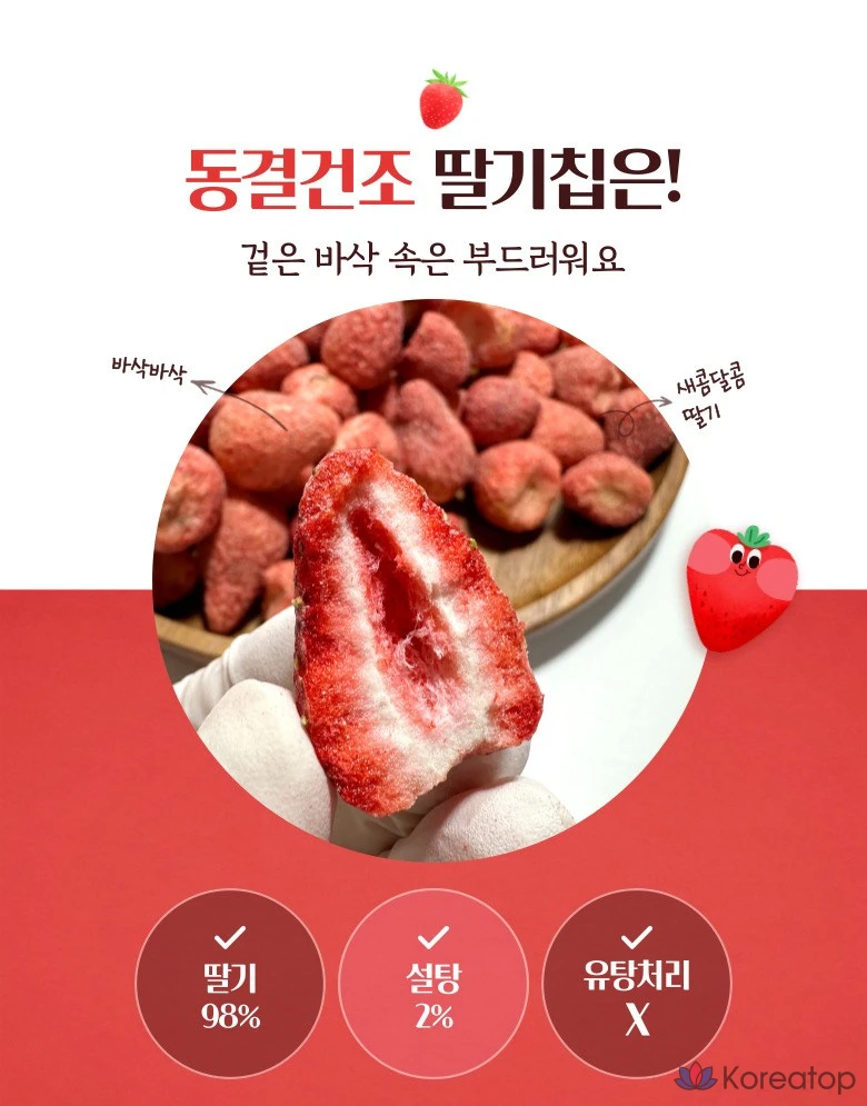 Клубничные чипсы Jangsuwang — это вкусное и полезное лакомство, которое сохраняет все полезные свойства свежих ягод благодаря сублимации. Они идеально подходят для перекуса в любое время дня, обеспечивая вас необходимыми витаминами и минералами. Удобная упаковка позволяет брать их с собой в дорогу или на работу. Наслаждайтесь натуральным вкусом клубники без добавления сахара и консервантов. 🍓