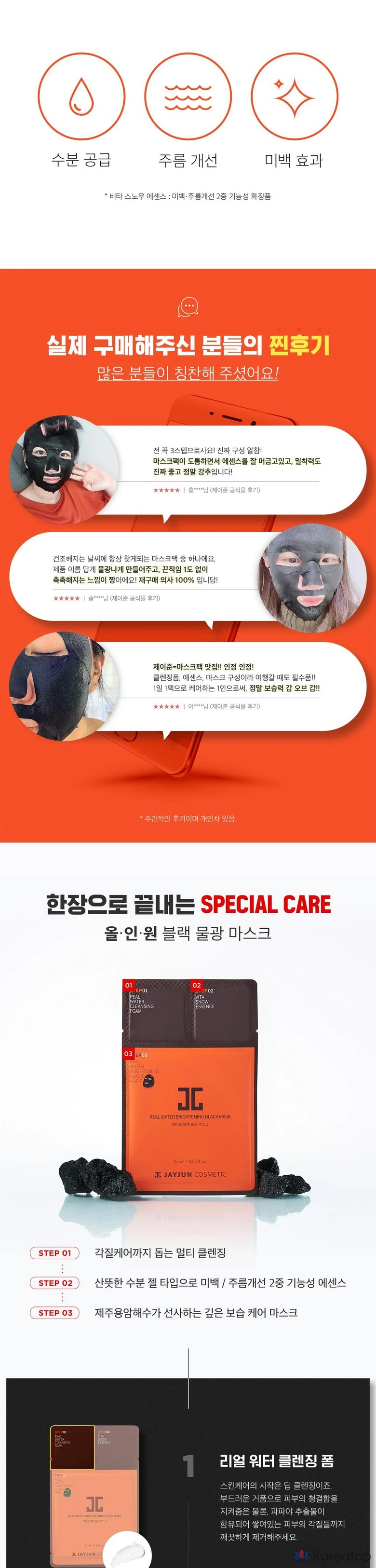 Набор из 10 листов маски для лица Jayjun Black Water Glow Mask, 3 шага.