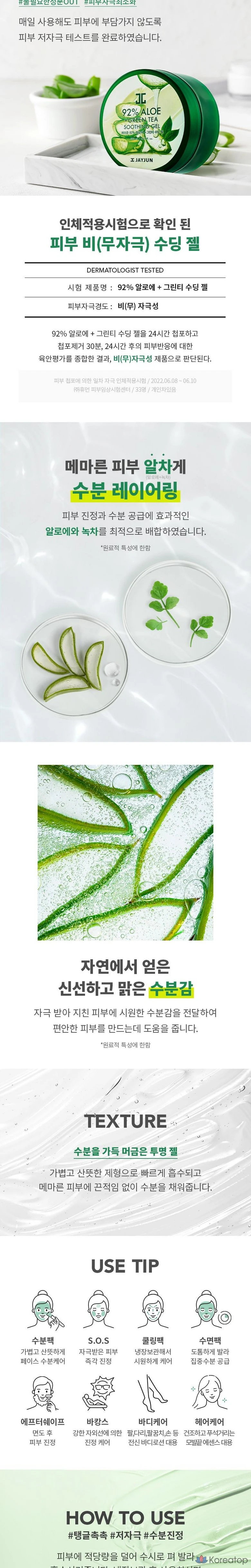 Успокаивающий гель с 92% алоэ вера и зеленым чаем, 1 шт., 300 мл