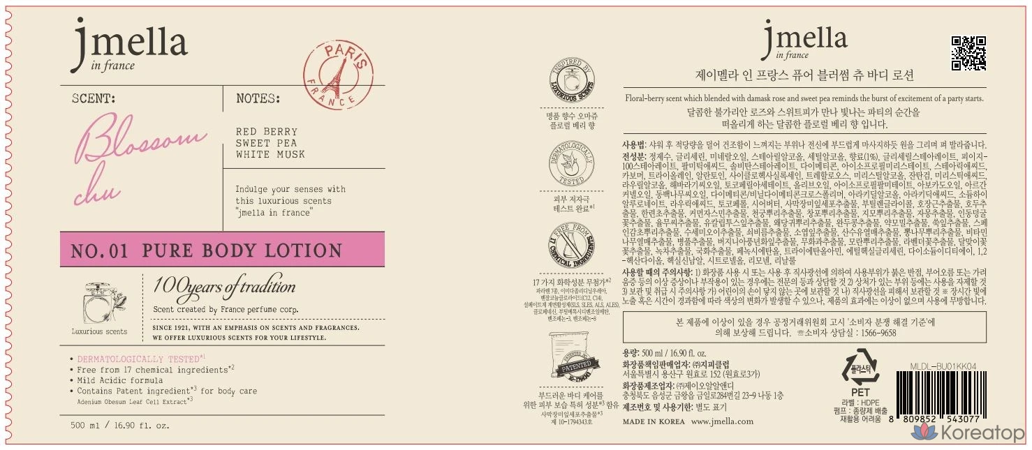 J.Mella Жевательный лосьон для тела Pure Blossom, 500 мл, 1 шт.