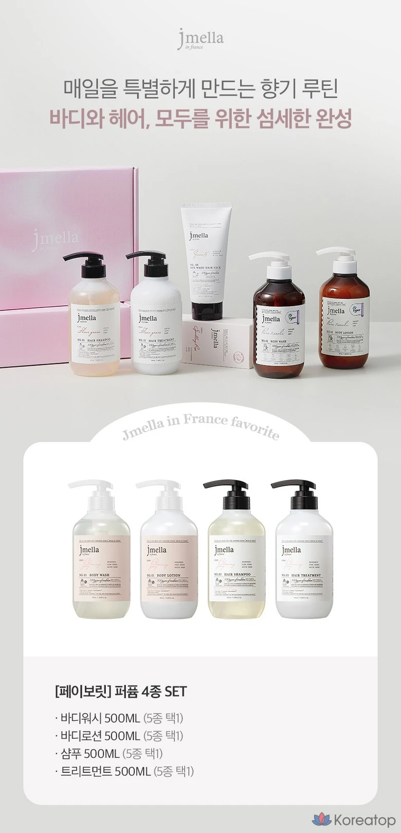 Набор для волос и тела Jmella, Шампунь, средство для ухода, гель для душа, лосьон для тела, Цветущий пион, 1 шт.