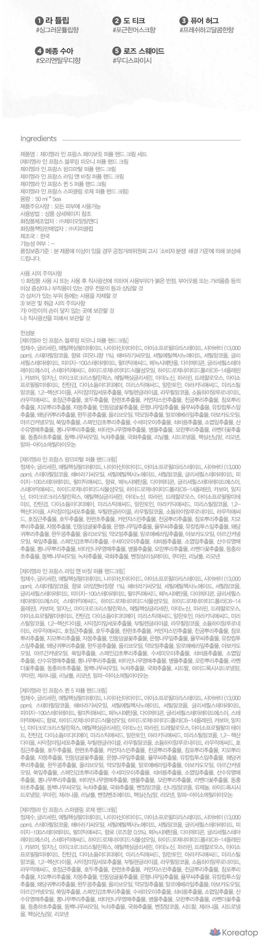 Набор из 5 кремов для рук Jmella, 1 комплект.