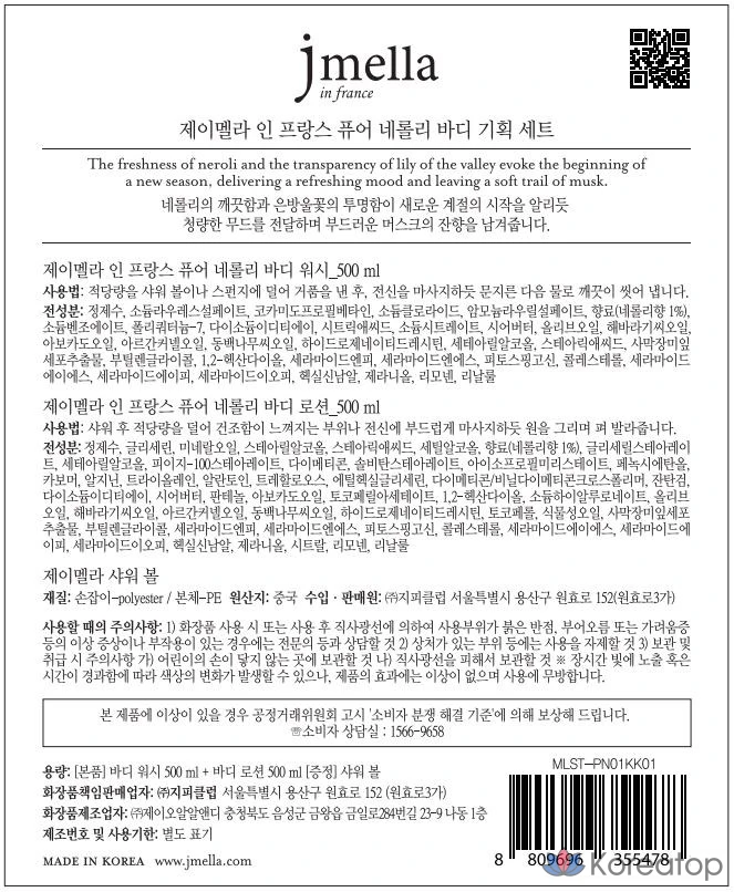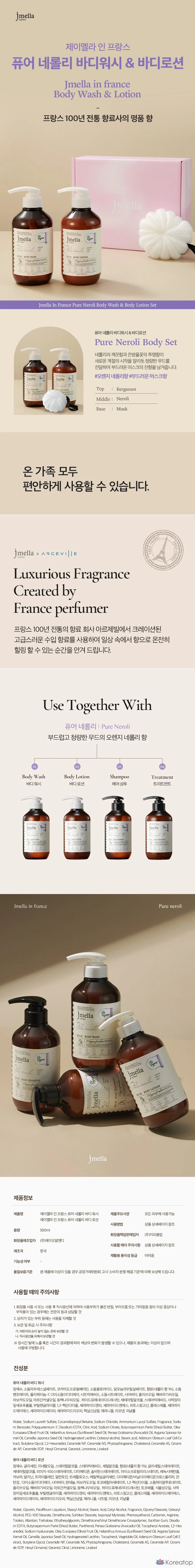 Набор Jmella гель для душа Pure Neroli Vegan 500 мл + лосьон для тела 500 мл + шарики для душа, 1 комплект.