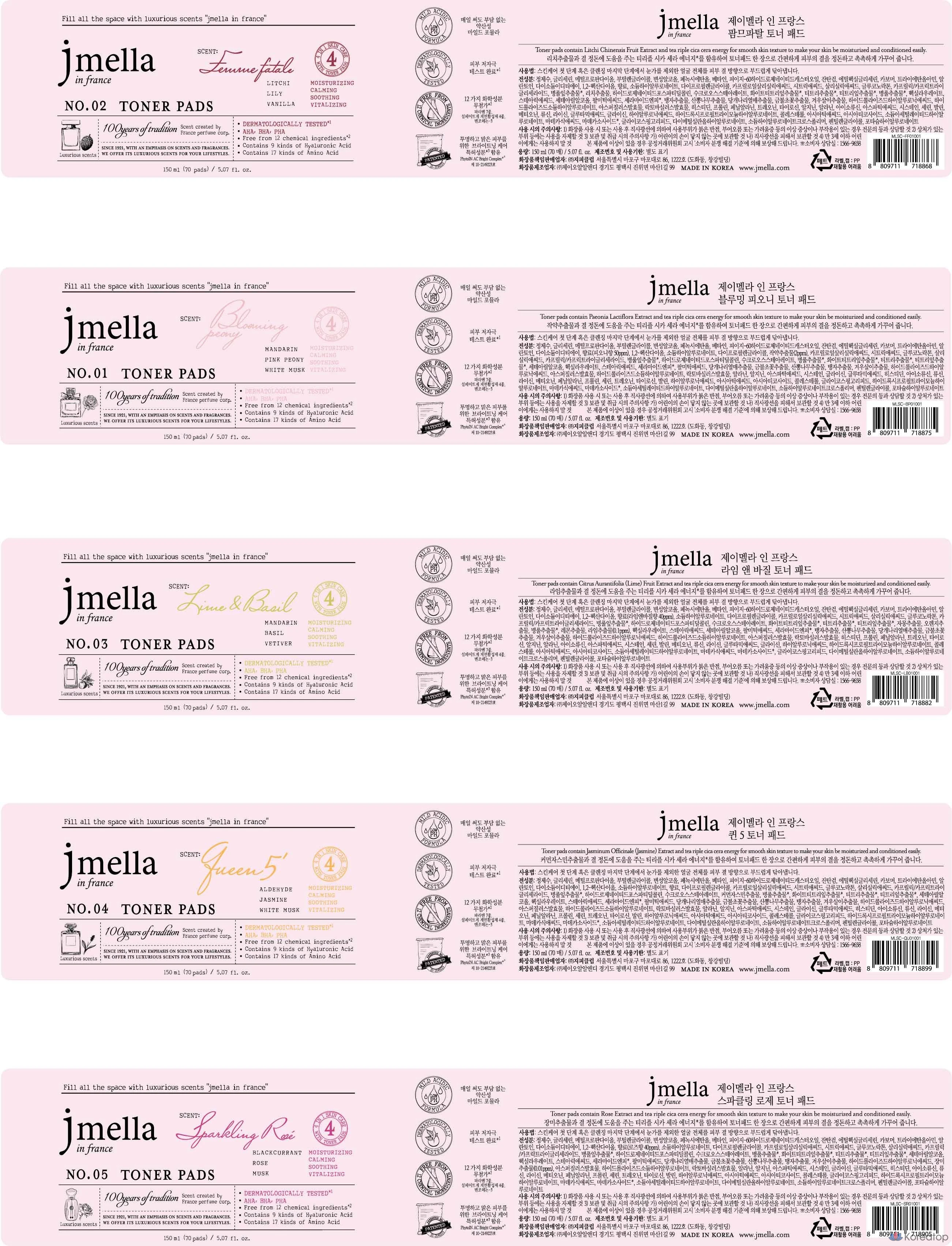 Тонизирующие подушечки для лица Jmella In France Sparkling Rose, 150 мл, 70 листов, 1 шт.