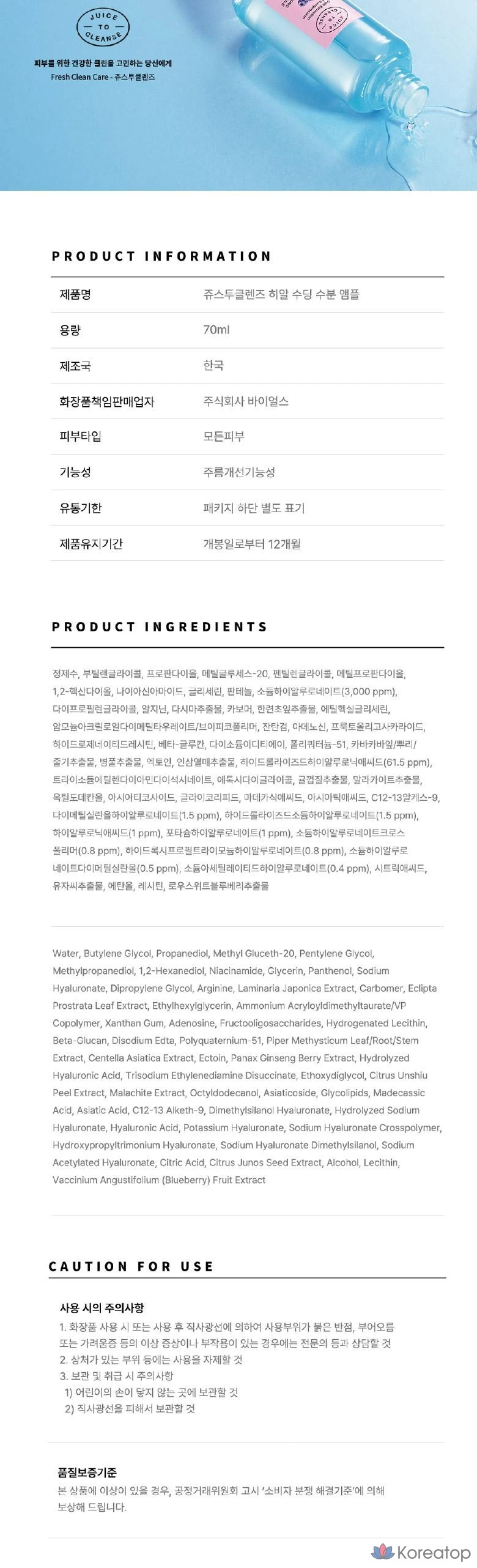 Увлажняющая ампула Juice To Cleanse Hyal Soothing Moisture Ampoule, 1 шт., 70 мл.