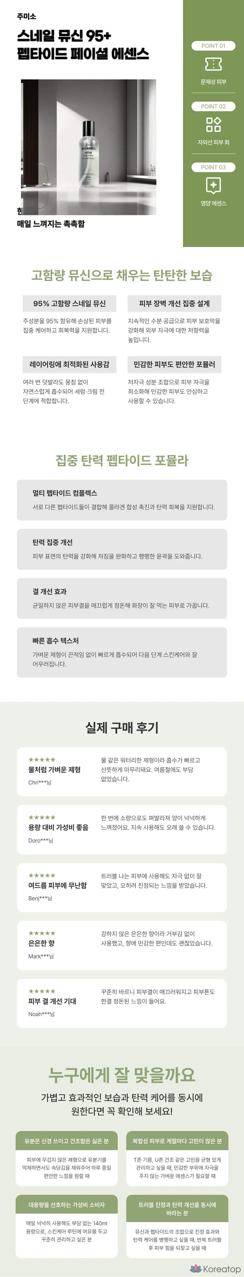 Многофункциональная эссенция с мощной формулой для комплексного ухода. Муцин улитки и пептиды работают на глубокое восстановление и укрепление кожного барьера. Средство способствует улучшению текстуры и повышению тонуса кожи. Идеально подходит для ежедневного ритуала красоты. 🌿✨