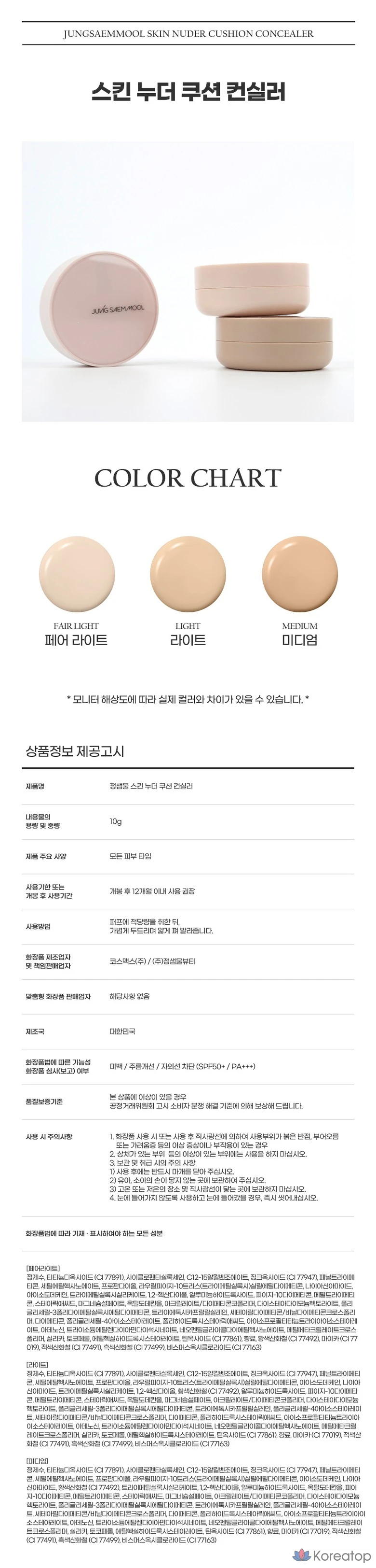 Jeong Saem Mool Skin Nude Cushion Concealer 10 г SPF50+ PA+++, Medium, 1 шт.