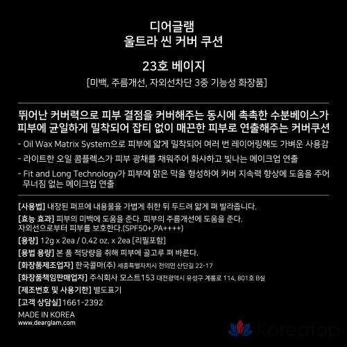 Набор тональных кремов Jungsaemmool Dear Glam Ultra Thin Cover Cushion + сменный блок, № 21, светло-бежевый, 24 г, 1 шт.