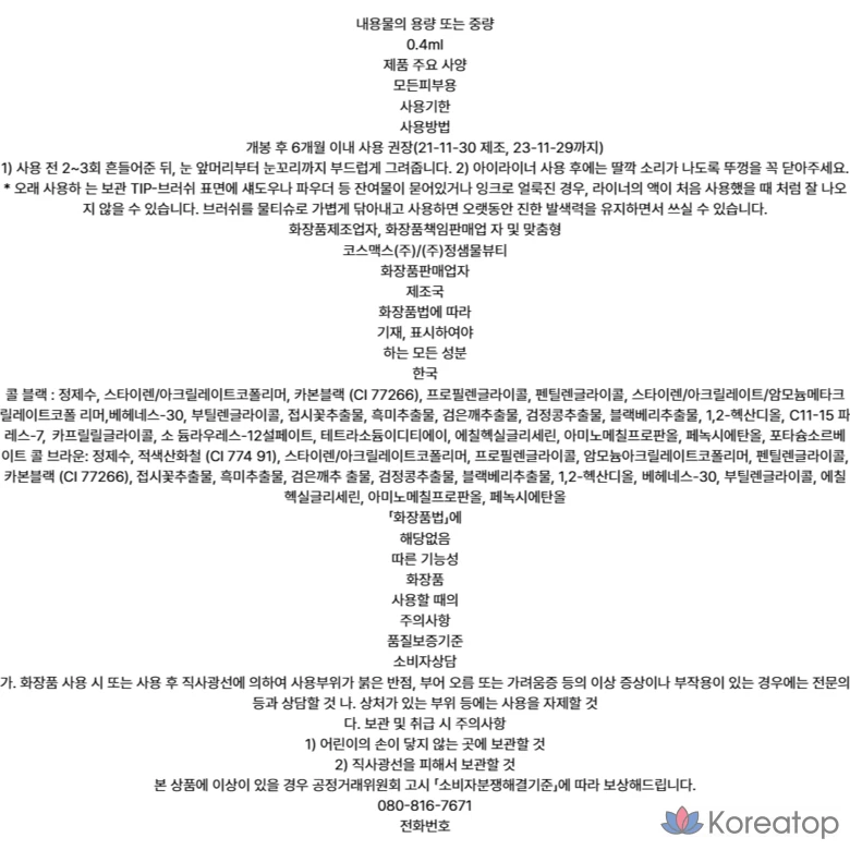Подводка для глаз Jungsaemmool Artist Kohl Pen Liner Eyeliner, Kohl Black, 1 шт.